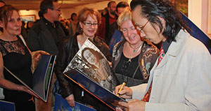 Li Zili dédicace ses livres lors de son exposition « Entre ciel et terre » à la maison de l’UNESCO en 2012