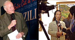Francesco Bandarin (sous-directeur général de l’UNESCO pour la culture) promeut l'exposition de LI Zili (à gauche) Li Zili interviewé par la presse « Xinhua News Agency » (à droite) à la maison de l’UNESCO en 2012