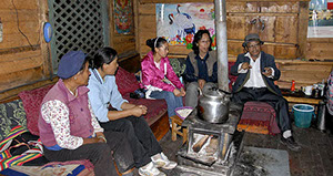 Li Zili rencontre un célèbre historien de l'écriture dongba, auprès du peuple Naxi au Yunnan, à l'été 2010