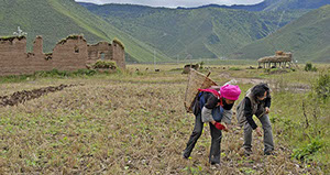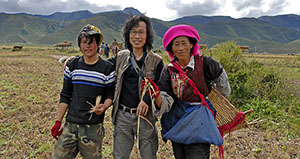 Li Zili découvre la cueillette de l'orge du Tibet au Yunnan, en avril 2010