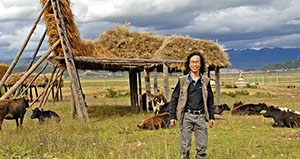 Li Zili (de signe astrologique chinois le bœuf) et ses amis bovins à Shangri-La au Yunnan, septembre 2010
