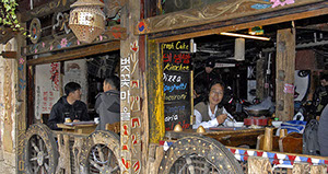 Li Zili goûte les repas traditionnels de Yunnan à Shangri-La au Yunnan, septembre 2010