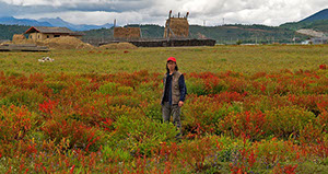 Li Zili au milieu d'un champ de langdu (plantes typiques de Shangri-La) à Shangri-La, en 2010