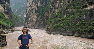 Li Zili devant un paysage de Jinshajiang qui marque le début du fleuve Yangtse en 2010